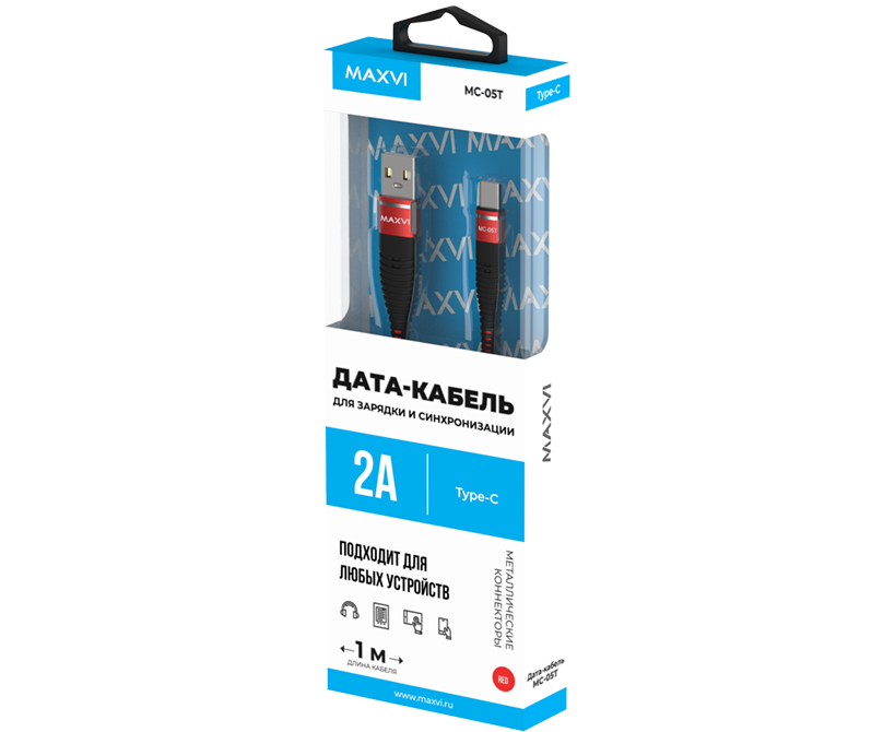 Кабель Maxvi MC-05T red USB-A-Type-C, 2A