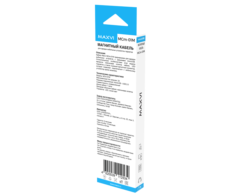 Кабель Maxvi MCm-01M blue USB-A-microUSB, 2A