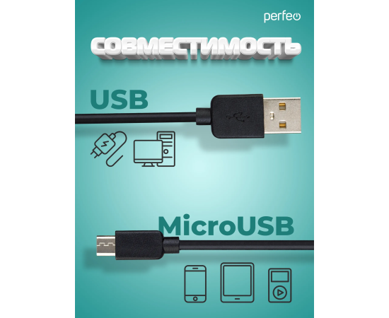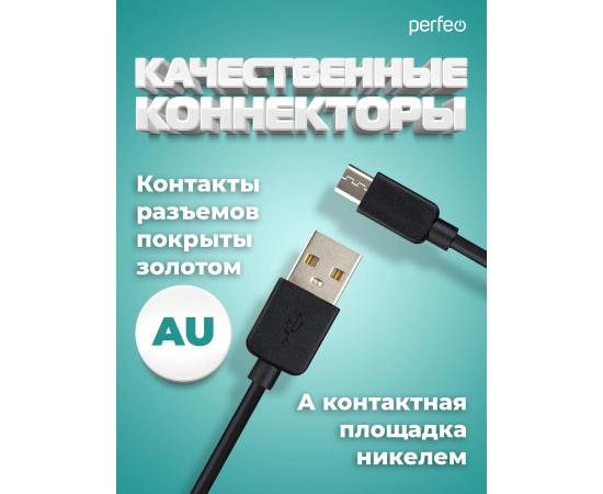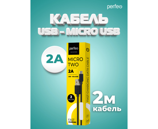 Кабель PERFEO U4010 USB2.0 A вилка - Micro USB вилка, черный, длина 2м, бокс