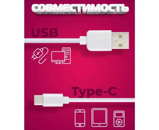Кабель PERFEO U4708 USB2.0 A вилка - USB Type-C вилка, белый, длина 2м, бокс