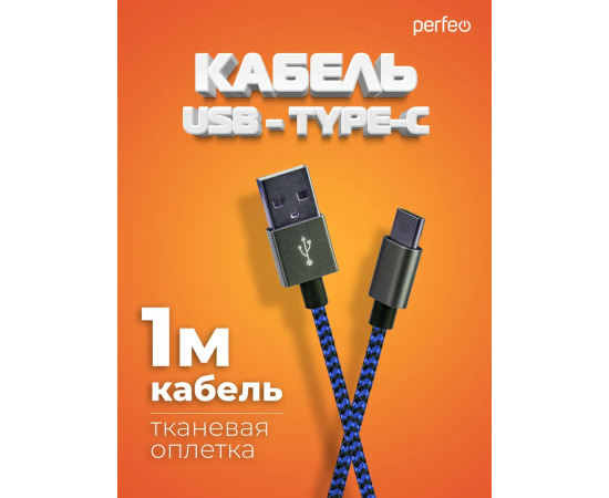 Кабель Perfeo U4903 USB2.0 A вилка - USB Type-C вилка черно-синий 1м
