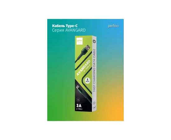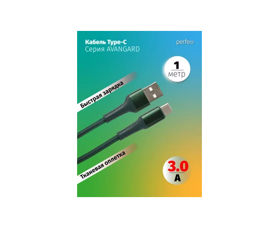 Кабель PERFEO USB A вилка - C вилка, 3A, зеленый, длина 1 м., AVANGARD (U4713)