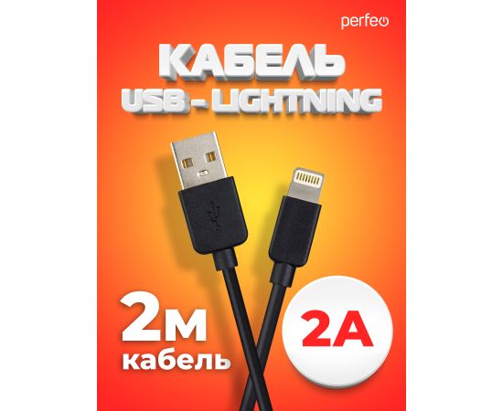 Кабель PERFEO USB A вилка - Lightning вилка, 2A, черный, длина 2 м., TWO (I4321)
