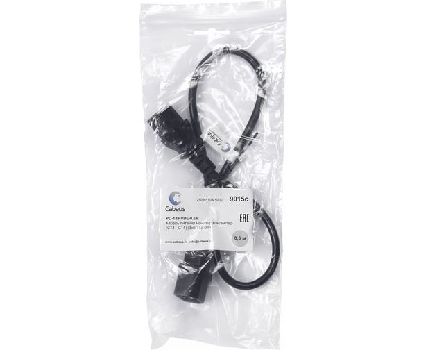 Кабель питания Cabeus PC-189-VDE-0.6M IEC 320 C13 - IEC 320 C14 (3x0.75)