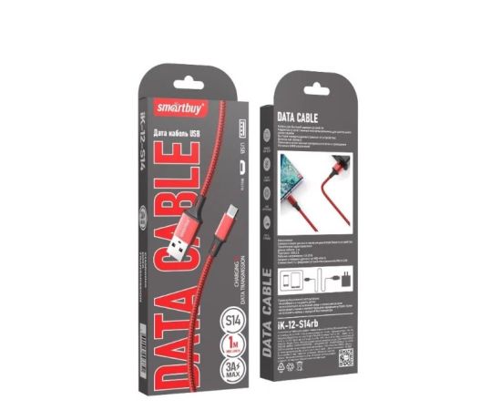 Кабель Smartbuy iK-12-S14rb MicroUSB, 3А, 1м красный/черн