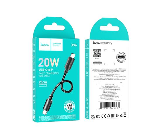 Кабель Type-C - Apple lightning Hoco X96 27W 25см 2,4A (black) (222404)