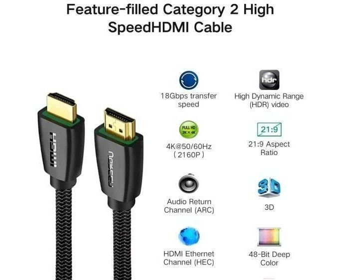 Кабель UGREEN HD118 40409 High-End HDMI Cable with Nylon Braid 1.5m Black