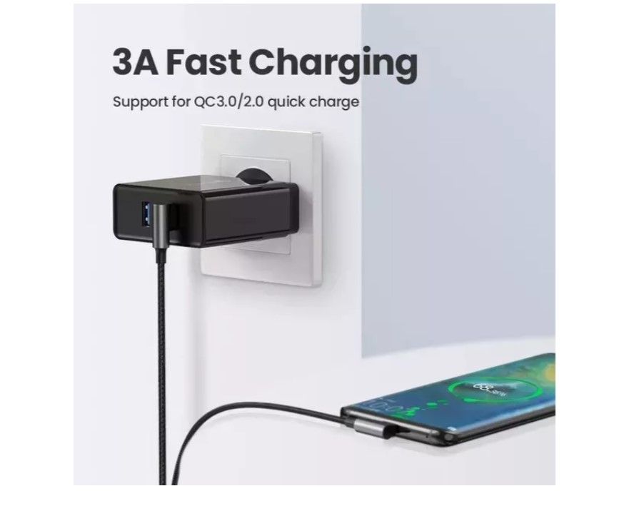 Кабель UGREEN US176 (20856) Right Angle USB-A to USB-C Cable 1m Space Gray