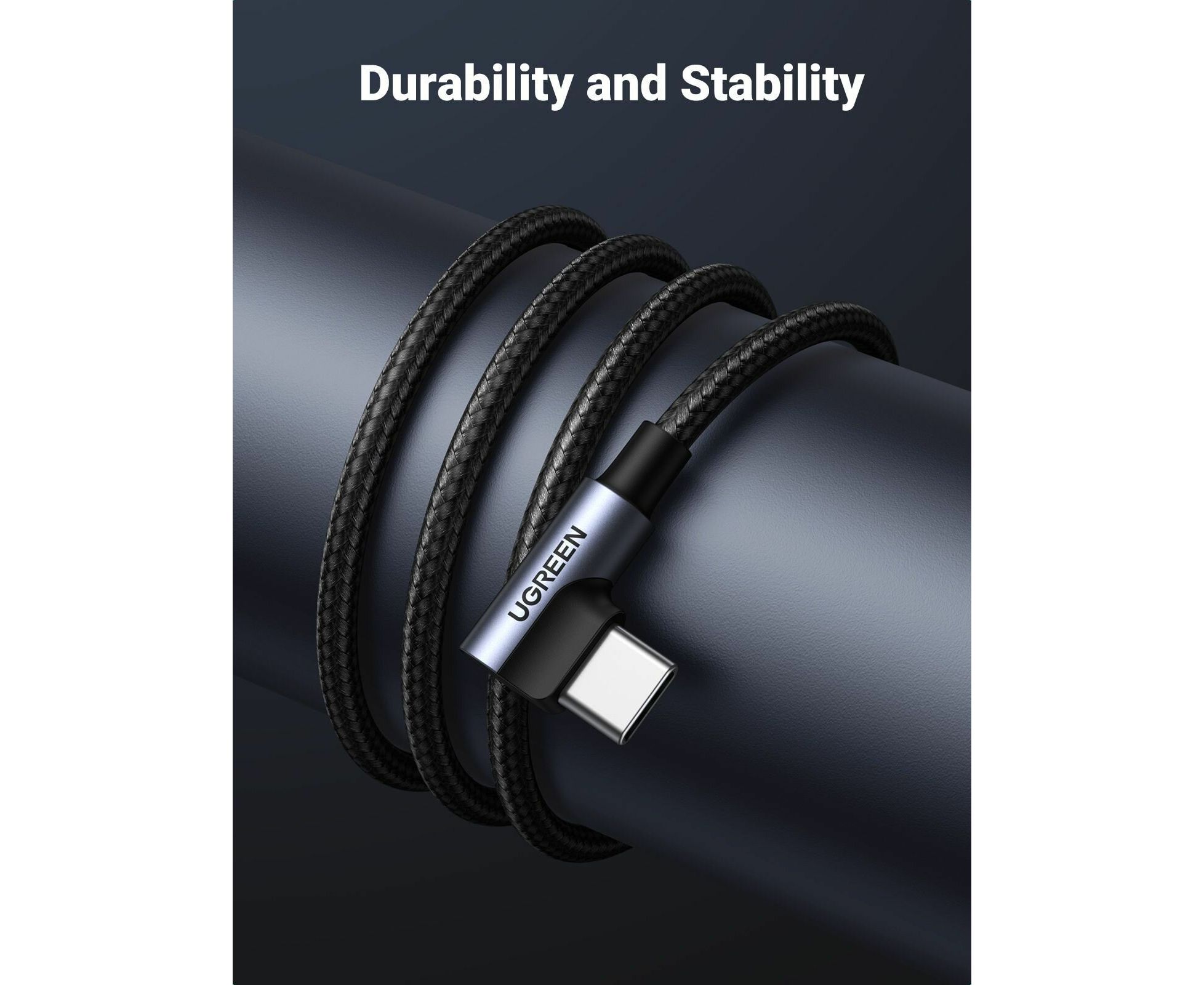 Кабель UGREEN US176 70875 Right Angle USB-A to USB-C Cable 3m Space Gray