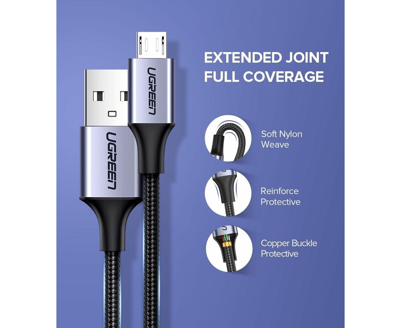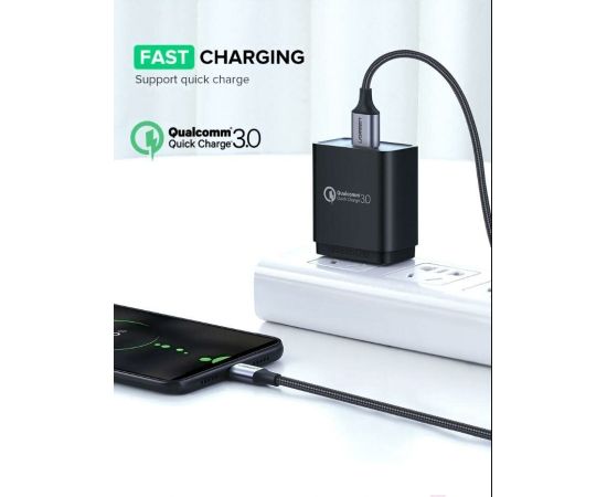 Кабель UGREEN US290 60148 USB 2.0 A to Micro USB Cable Nickel Plating Alu Braid 2m Grey/Black