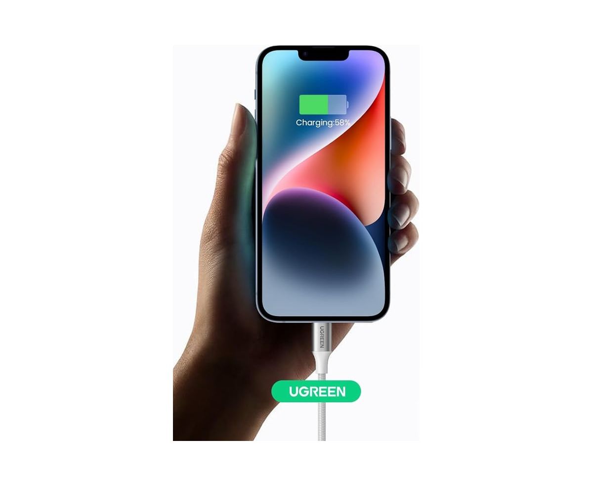 Кабель UGREEN US304 70523 USB-C to Lightning M/M Cable Aluminum Shell Braided 1m Silver