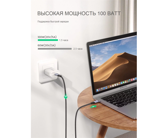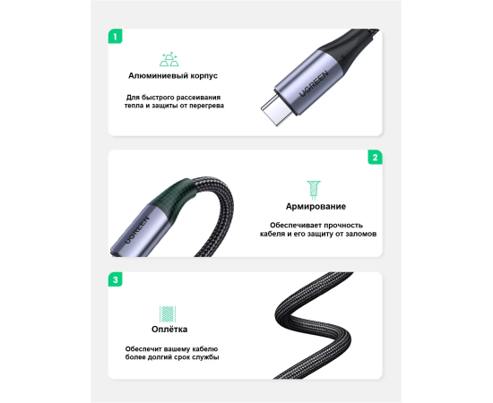 Кабель UGREEN US355 80150 USB-C 3.1 M/M Gen2 5A Cable with Braided 1m Black
