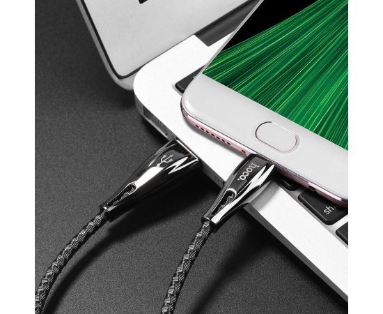 Кабель USB HOCO U56 Metal armor USB-MicroUSB, 2.4А, 1.2м серый металлик