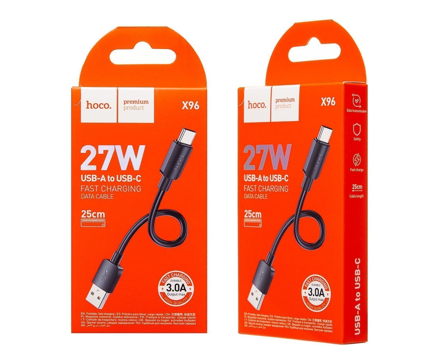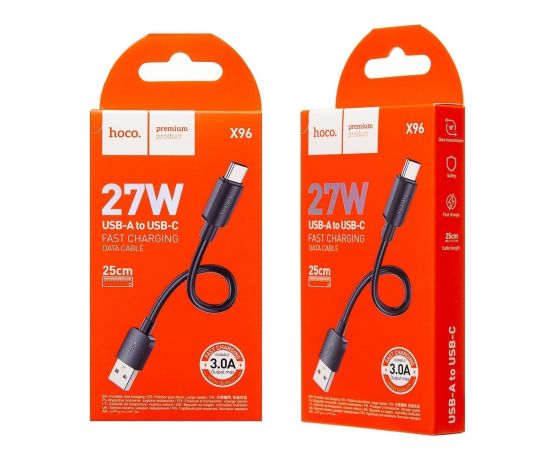 Кабель USB - Type-C Hoco X96 27W 25см 3A (black) (222411)