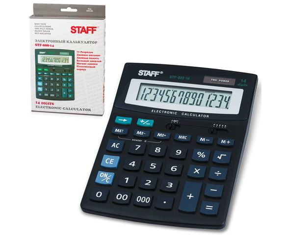 Простой в использовании и точный в расчётах настольный калькулятор STAFF STF-888-14 выполняет все необходимые вычисления на работе и дома. Кнопки нажимаются легко и тихо, позволяя работать с максимальным комфортом.