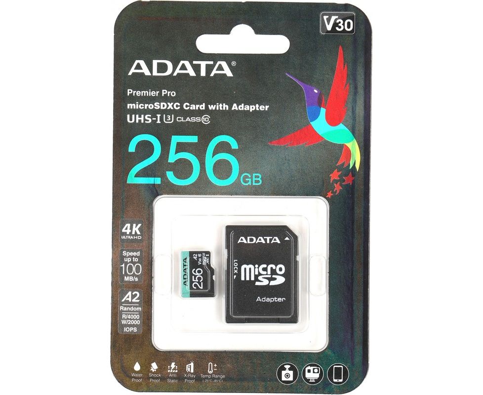 Карта памяти A-DATA UD256GUI3V30A2SP-RA1 256GB microSDXC Class 10 UHS-I U3 V30 A2 180/160 MB/s (SD адаптер)