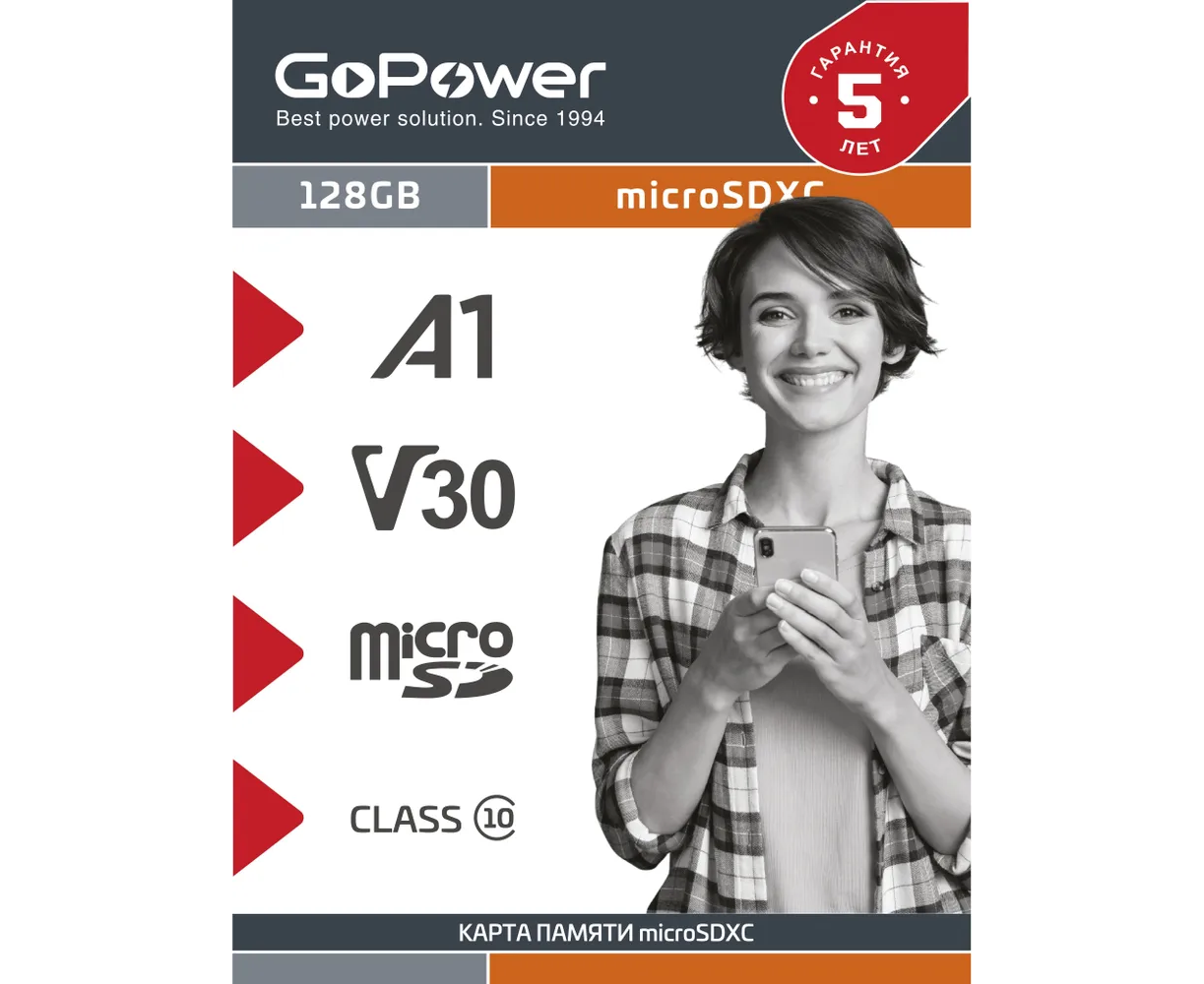 Флэш-карты microSDXC Ultra High Speed UHS-I (U3) премиальной линейки карт памяти GoPower с высокой скоростью передачи данных и высочайшей надежностью. Предназначены для устройств с интенсивной записью данных, таких как видеорегистраторы и любые системы видеонаблюдения, экшен камеры, смартфоны и др. Производятся на основе премиальных, лучших в отрасли компонентов. Класс производительности по скорости запуска приложений – A1.