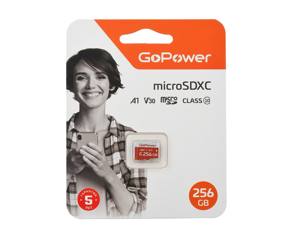 Карта памяти microSD GoPower 256GB Class10 UHS-I (U3) 100 МБ/сек V30 без адаптера