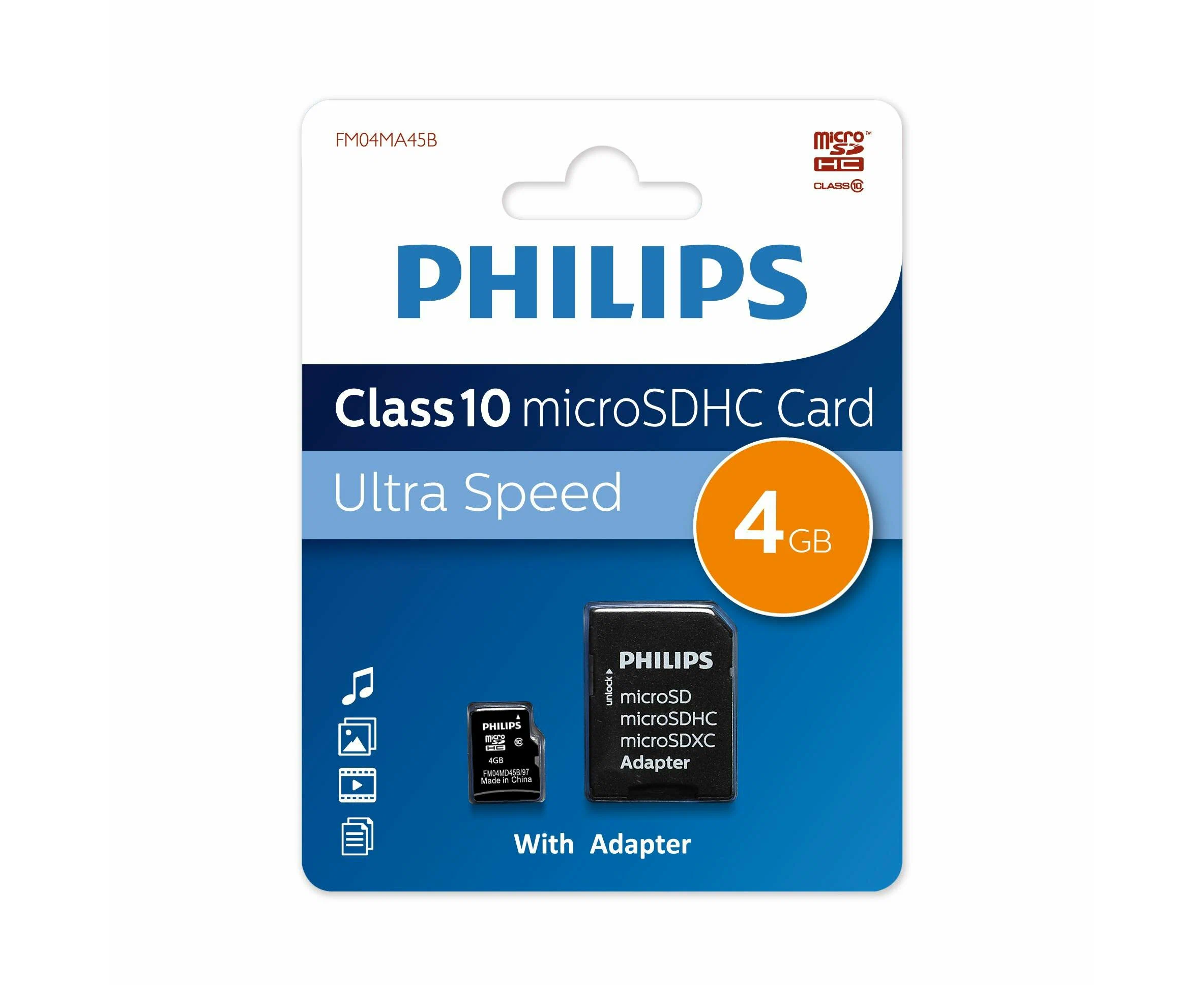 Флеш карта microSD 4GB PHILIPS microSDHC FM04MA45B/97