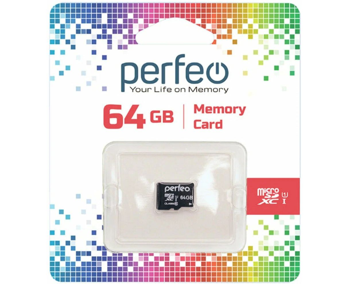 Карта памяти Perfeo microSDXC 64GB High-Capacity (Class 10) UHS-1 без адаптера, (Арт. PF64GMCSX10U1)