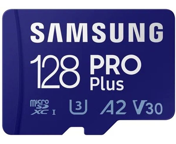 Карта памяти Samsung Pro Plus (MB-MD128SA/KR) microSDXC 128GB Class 10, A2, V30, UHS-I (U3), W 130 МБ/с, R 180 МБ/с, адаптер на SD
