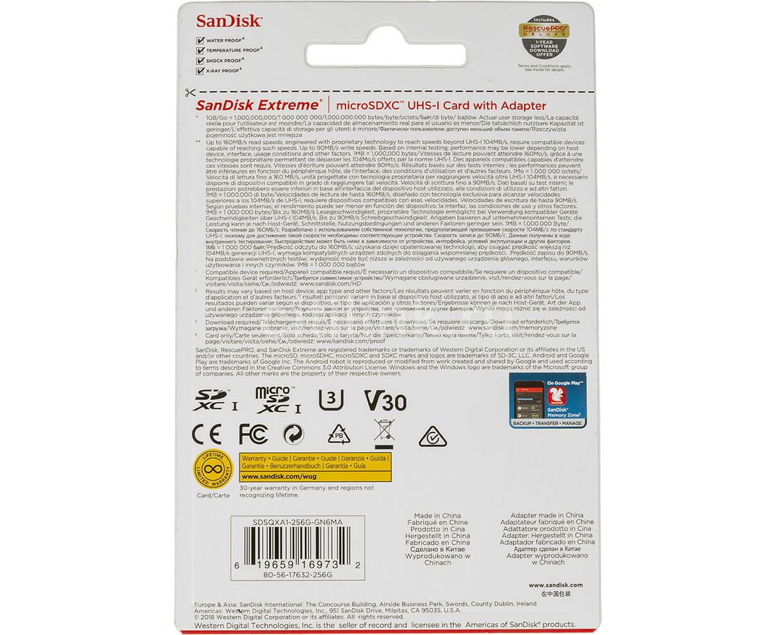 Карта памяти SANDISK MicroSDXC 256GB SDSQQVR-256G-GN6IA UHS-3