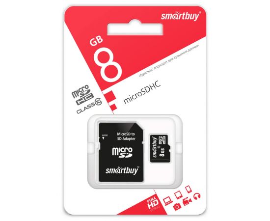 Карта памяти SmartBuy (SB8GBSDCL10-01) 8GB microSDHC Class 10 (SD адаптер)