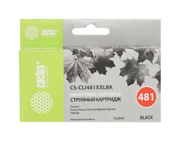 Картридж Cactus (CS-CLI481XXLBK) черный струйный (12мл) для Canon Pixma TR7540/TR8540/TS6140/TS8140