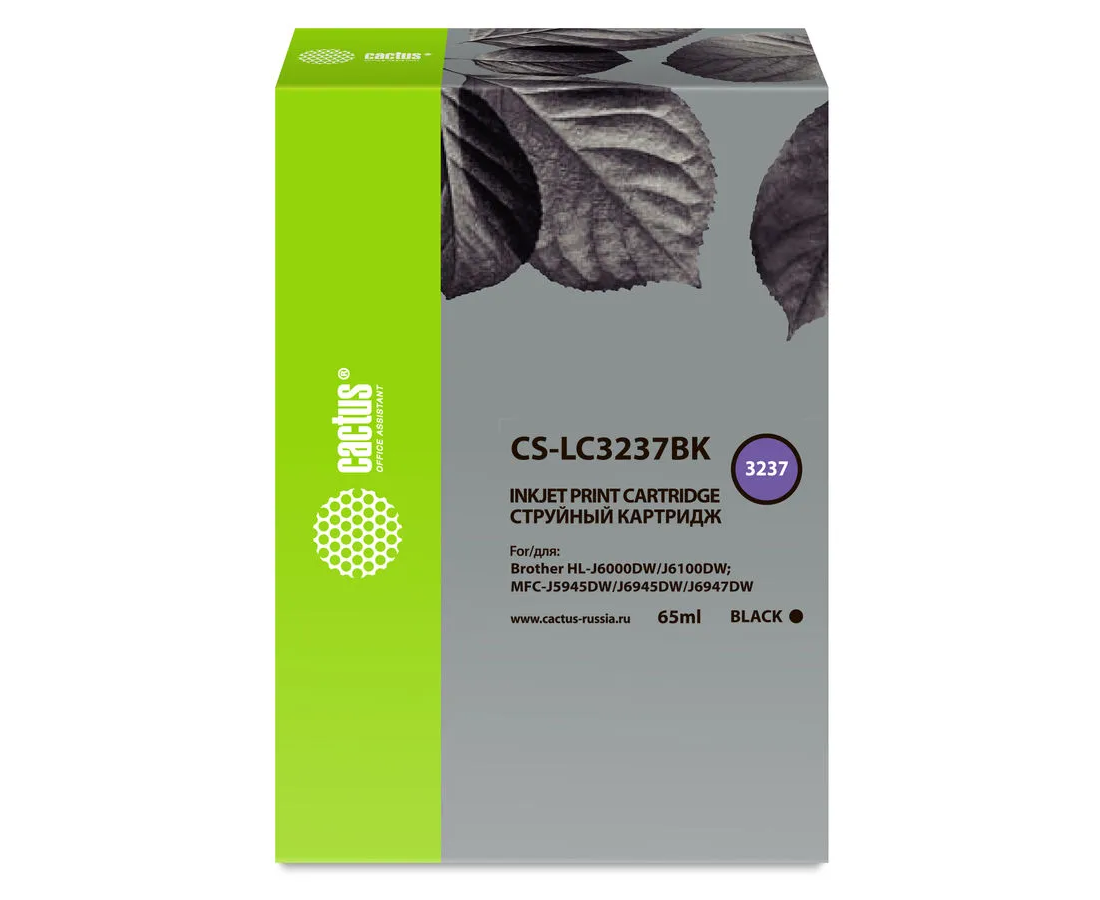 Картридж Cactus CS-LC3237BK черный струйный (65мл) для Brother HL-J6000DW/J6100DW
