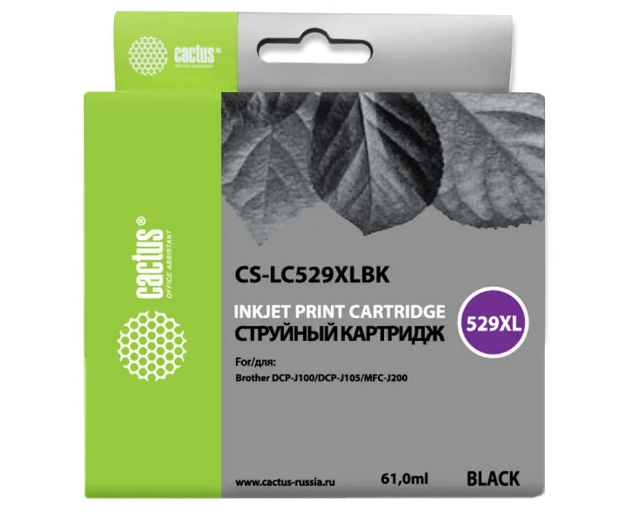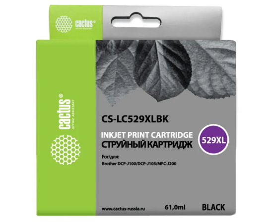 Картридж Cactus CS-LC529XLBK черный струйный (61мл) для Brother DCP-J100/J105/J200