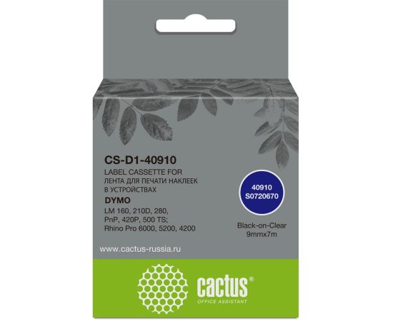 Картридж ленточный Cactus CS-D1-40910 40910 для Dymo LM 160/210D/280/PnP/420P/500 TS; Rhino Pro 6000/5200/4200