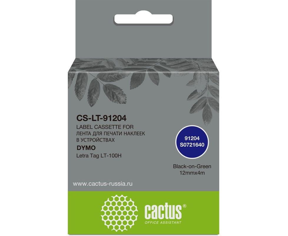 Картридж ленточный Cactus CS-LT-91204 91204 для Dymo Letra Tag LT-100H