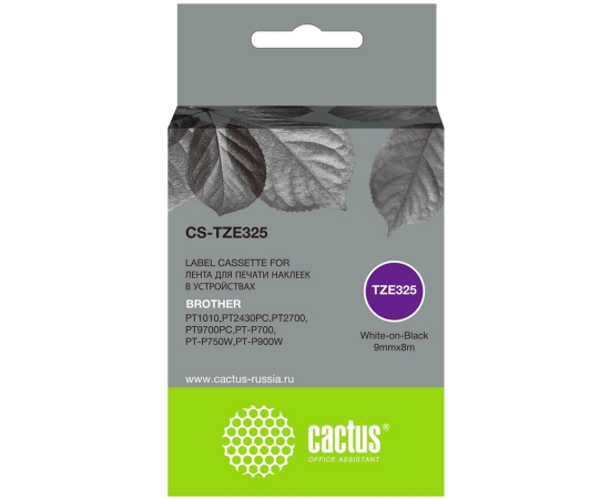 Картридж ленточный Cactus CS-TZE325 TZE-325 белый на черном 9x8 для Brother 1010/1280/1280VP/2700VP