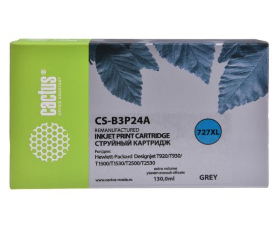 Картридж струйный Cactus №727 CS-B3P24A серый (130мл) для HP DJ T920/T1500/T2530