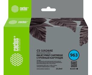 Картридж струйный Cactus CS-3JA26AE 963 черный пигментный 23мл для HP OfficeJet 9010/9012/9013/9014/9015/9016/9019/9020/9025