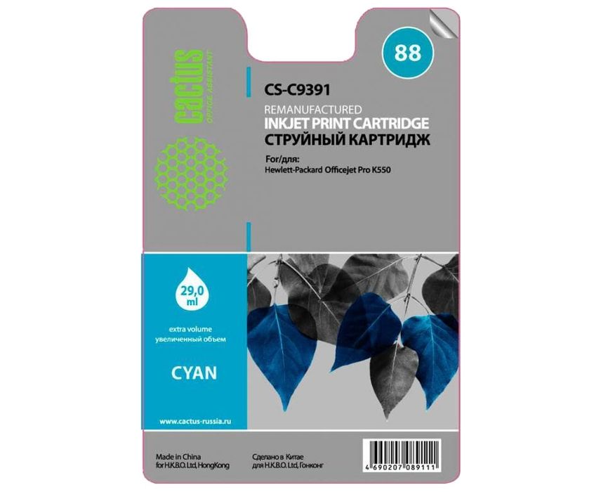 Картридж струйный Cactus CS-C9391 голубой для №88 HP Officejet Pro K550 (29ml)