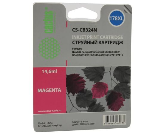 Картридж струйный Cactus CS-CB324N пурпурный для №178XL HP PhotoSmart B8553/C5383/C6383/D5463 (14,6m