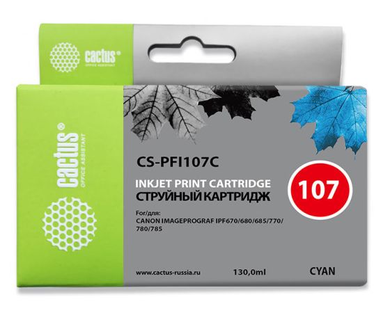Картридж струйный Cactus CS-PFI107C синий (130мл) для Canon IP iPF670/iPF680/iPF685/iPF770/iPF780/iPF785/
