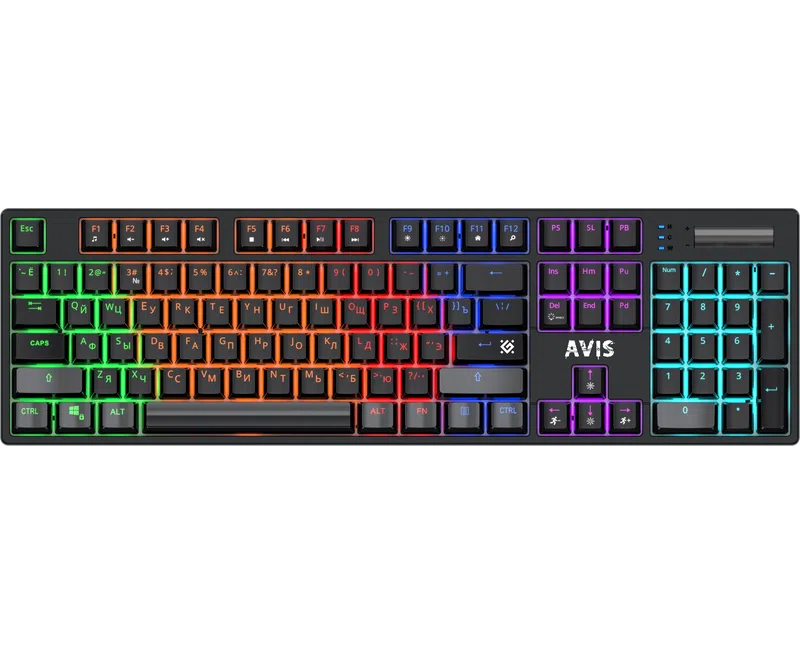 Клавиатура DEFENDER Avis GK-312 RU,черн,104+FN,радуж,SNK Red (45312)