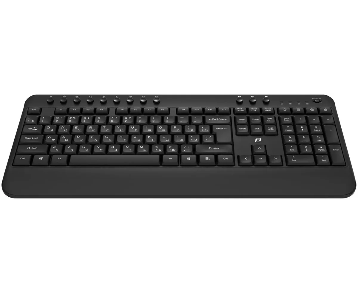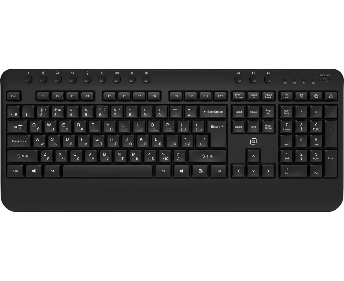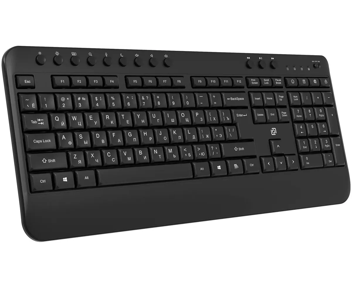 Клавиатура Оклик K257W — беспроводная мембранная модель с мультимедийными клавишами, предназначенная для офисной и домашней работы. Основные характеристики включают полноразмерную раскладку, поддержку радиоканала 2.4 ГГц и эргономичный дизайн.