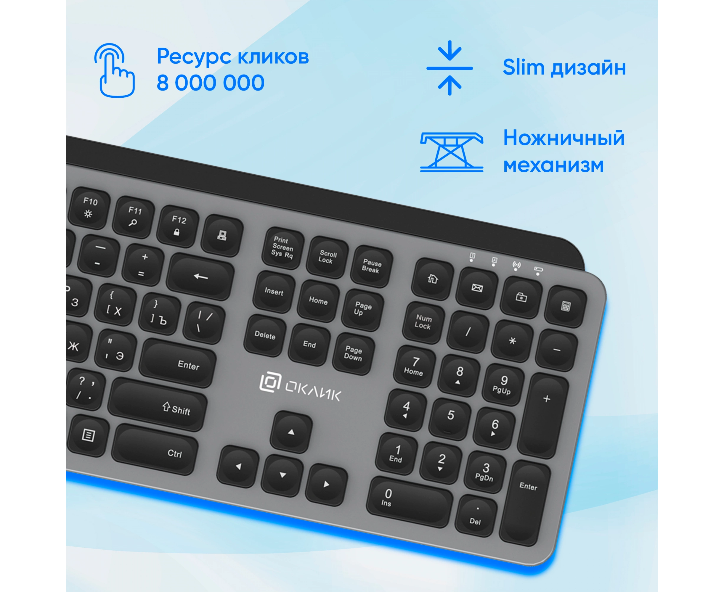 Ножничный механизм клавиш. Беспроводное подключение. Slim дизайн.