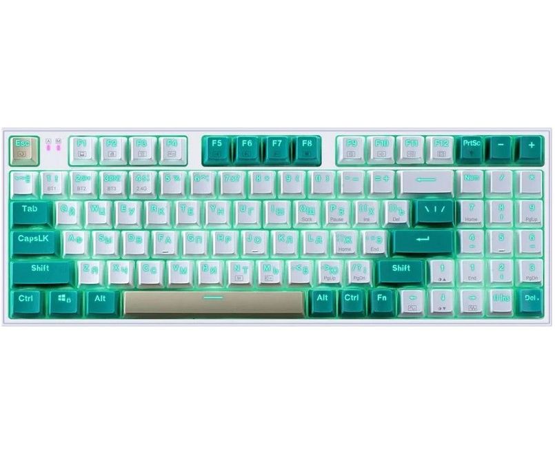 Уникальный дизайн, белые кастомные почти бесшумные свичи Redragon, беспроводные протоколы связи (BT, 2.4G), крутая RGB-подсветка — это Veigar! Подходит как для игр, так и для работы.