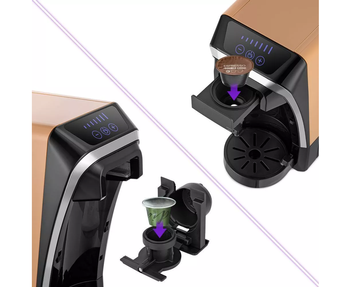 Капсульные кофеварки позволяют сделать процесс приготовления удобным. Необходимо просто поместить капсулу в адаптер, а адаптер - в кофеварку. В комплекте идут 2 адаптера для капсул типа Nespresso Original и Dolce Gusto. Экспериментируйте со вкусом!