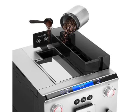Встроенная кофемолка позволяет качественно измельчать кофейные зёрна непосредственно перед приготовлением кофе. Кофемолка имеет металлические конические жернова и регулировку степени помола. Также в кофемашине можно сварить кофе из уже молотого кофе.