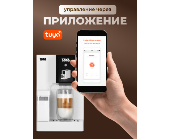 Автоматический капучинатор, позволит вам с легкостью приготовить идеальную плотную молочную пенку для капучино, латте и других напитков с молоком. Выберите объем напитка и сохраните свои предпочтения в памяти кофемашины, чтобы наслаждаться чашкой любого размера, в то время как TAYA machine R5 автоматически приготовит вашу идеальную порцию кофе.