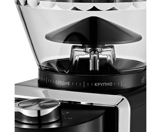 Жерновая кофемолка КТ-787 предназначена для помола кофейных зёрен. Она имеет конические жернова из углеродистой стали. Кофемолка даёт равномерный помол и позволяет настроить его степень: от мелкого - для эспрессо кофеварки, до крупного - для френч-пресса.