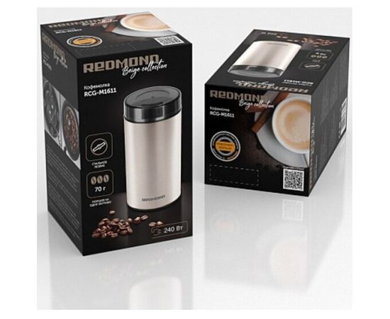 REDMOND RCG-M1611 – это компактная кофемолка в стильном металлическом корпусе, предназначенная для быстрого и удобного помола кофейных зерен, специй и орехов.