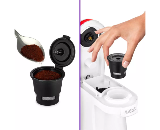 Кофеварка КТ-7122 поможет приготовить кофе, чай или какао в капсулах. Вы можете приготовить любой кофейный напиток на основе эспрессо. Для КТ-7122 вы можете использовать одноразовые капсулы стандарта K-Cup или многоразовую капсулу из комплекта.