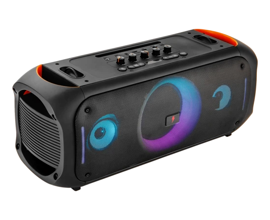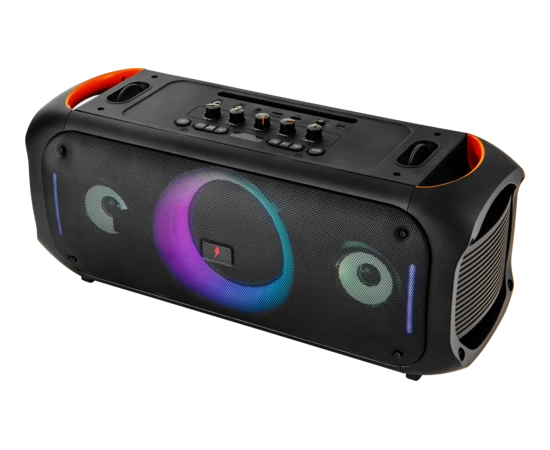 Система оснащена встроенными регуляторами тембра низких и высоких частот, что позволяет точно настроить звук под ваши предпочтения. Встроенный аккумулятор емкостью 6000 мАч с напряжением 7.4 В обеспечивает до 10 часов непрерывного воспроизведения музыки при уровне громкости 50%. Удобная ручка для переноски и возможность зарядки внешних устройств делают систему удобной в использовании. Частотный диапазон воспроизведения составляет от 60 до 18000 Гц, а коэффициент гармоник не превышает 0,1%. Поддержка режима TWS позволяет соединять две колонки для создания стереозвука. Вес устройства составляет 6.4 кг, что делает его достаточно портативным для переноски.