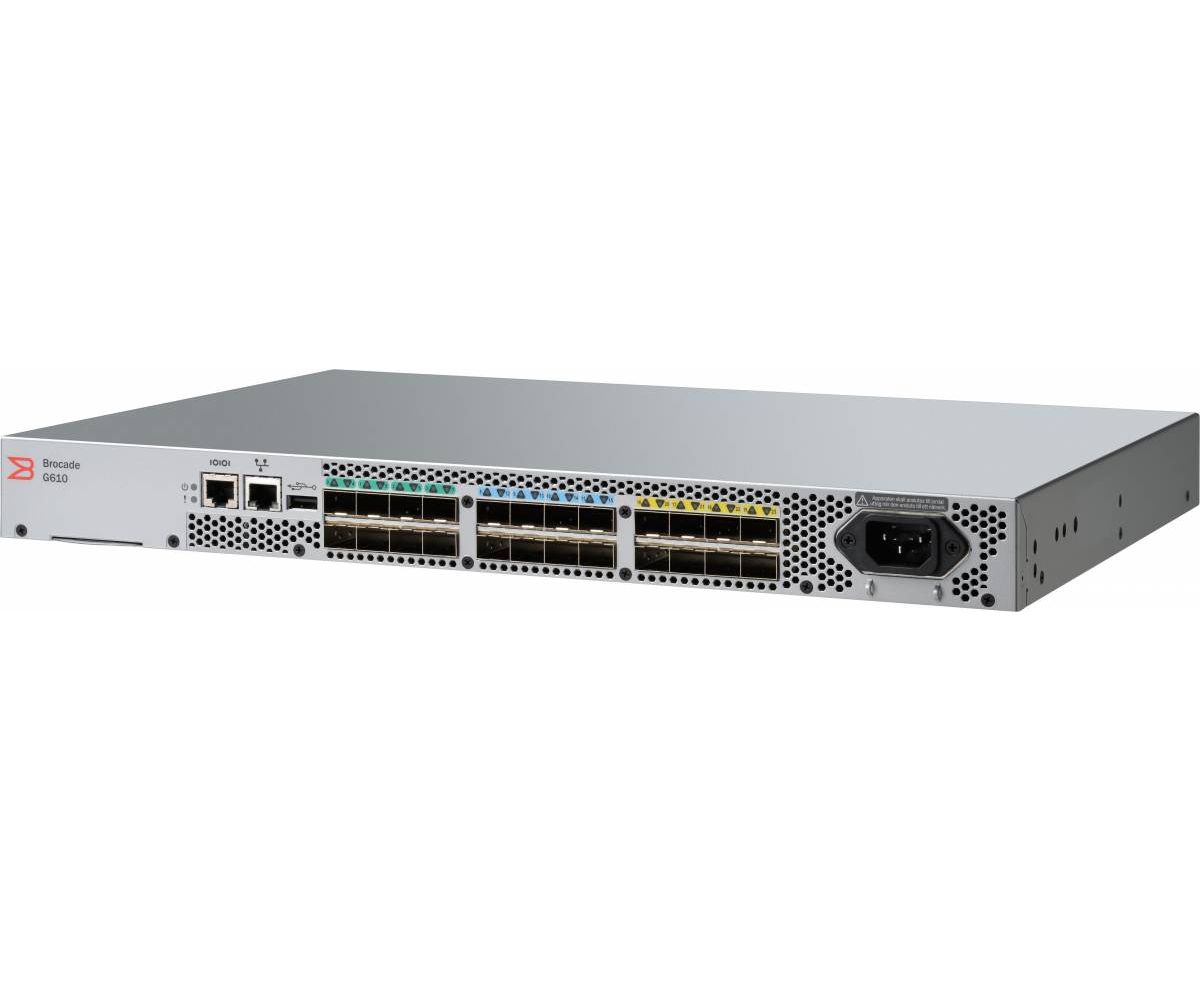 Коммутатор Brocade G610 (BR-G610-8-16G-0-CR) 24-port FC Switch, 8-port licensed, 8x 16Gb SWL SFP+, 1 PS, FOS Notupgradable